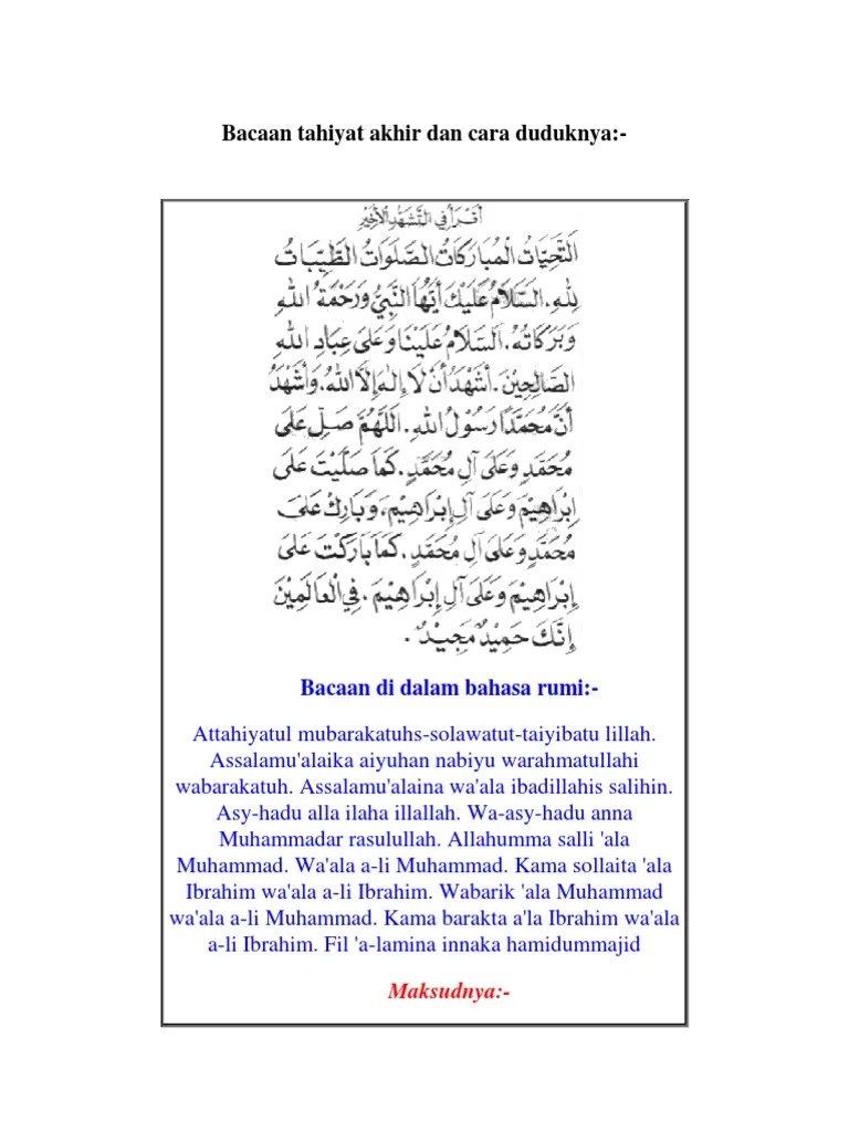 Panduan bacaan tahiyat akhir dan tahiyat awal dalam rumi yang betul wajib dibaca sebelum salam dalam solat dari jakim mengikut sunnah nabi muhammad doa .